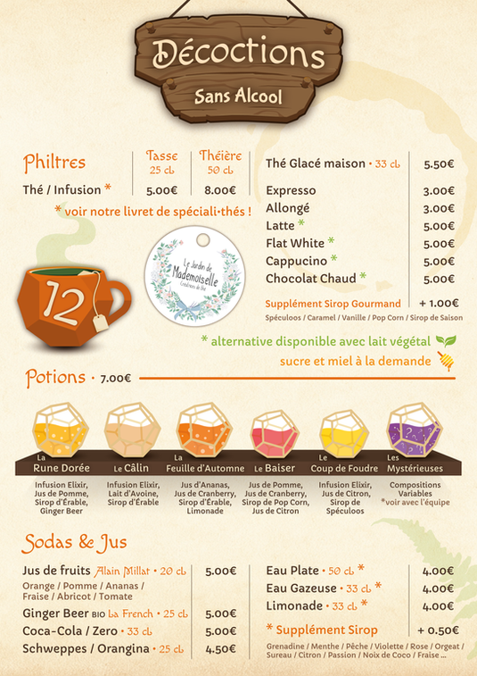 Attention, pour des questions de licence, pas de breuvages alcoolisés sans victuailles !